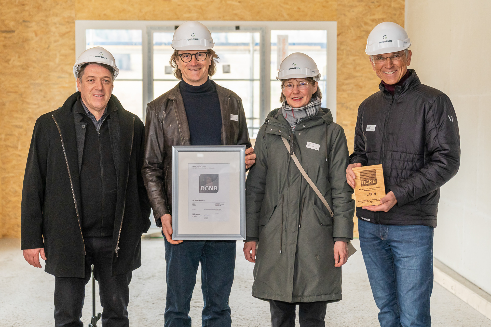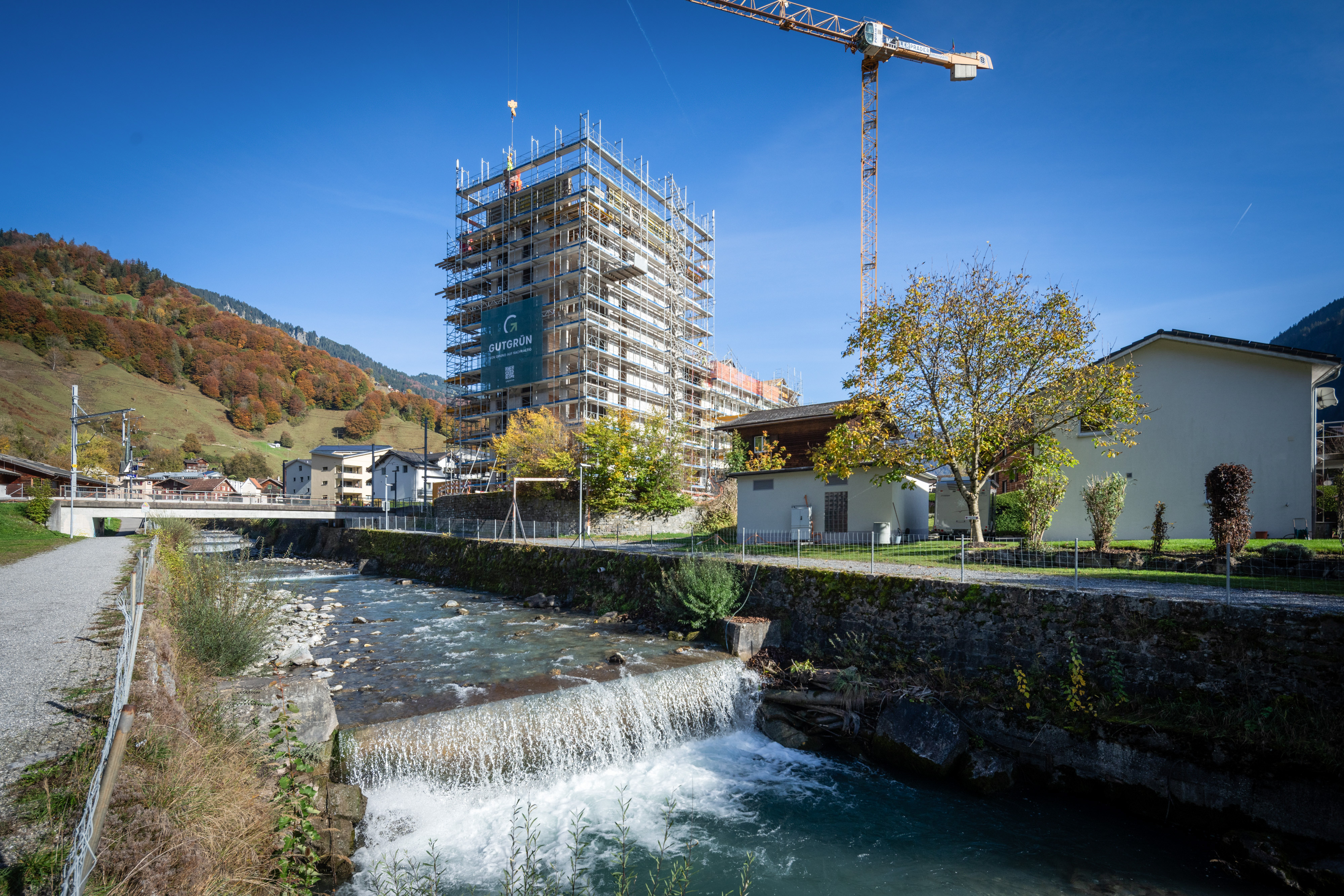 Beim Aufrichtfest der Mühle Grüsch wurde ein bedeutender Meilenstein gesetzt: Das erste DGNB-Rückbauzertifikat in der Schweiz wurde übergeben. Dank einer konsequent nachhaltigen Bauweise werden bis zu 95 % der Abbruchmaterialien wiederverwendet, Recycling-Beton reduziert die CO₂-Emissionen, und die Photovoltaik-Fassaden sorgen für eine umweltfreundliche Stromproduktion direkt am Gebäude.